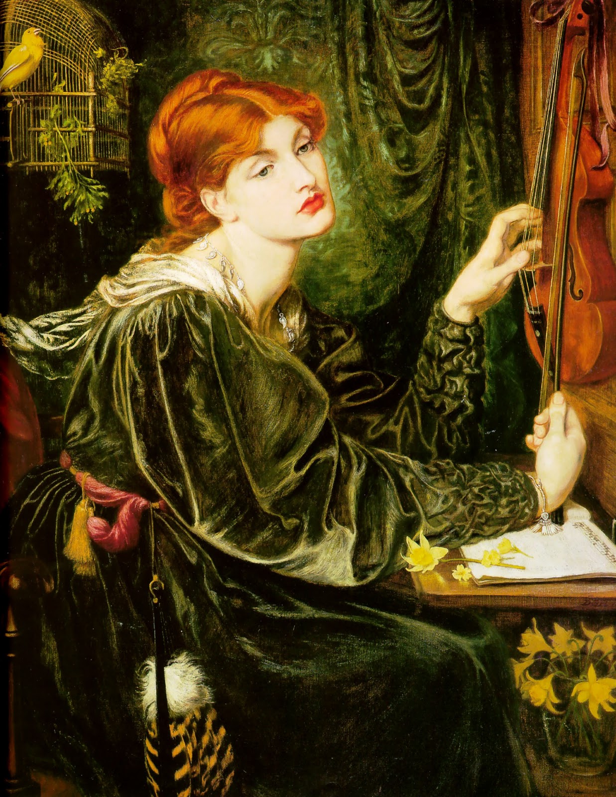 Uno che si chiama Dante di nome, deve avere la sua Beatrice, no? E infatti eccola qua. Il suo nome è Elizabeth Siddal sua musa principale e moglie. Il dipinto è stato realizzato dopo la morte di lei, e infatti ne riprende l'espressione, causata dal laudano. Notare che l'uccello le porge un papavero, componente del veleno).